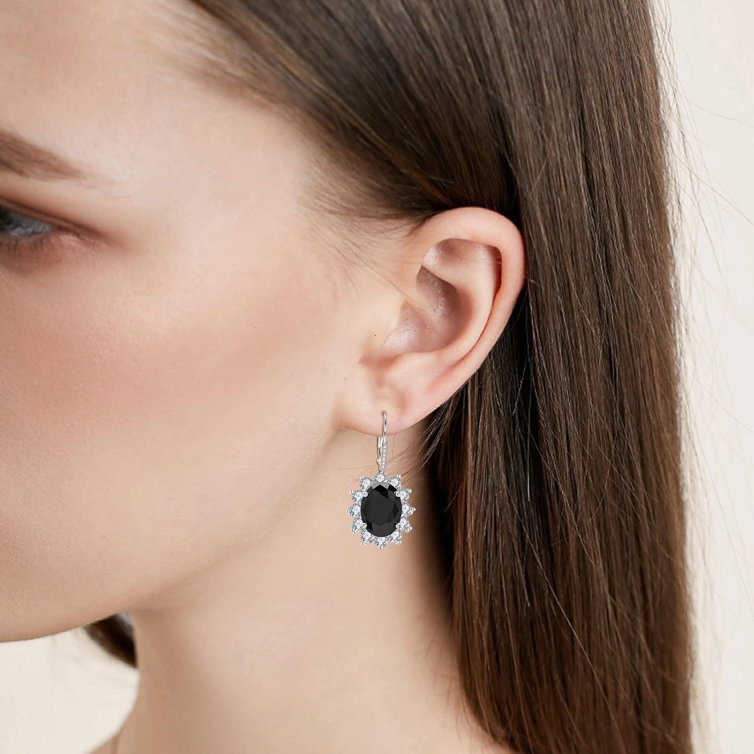 925 Sterling Silver Oval Cut Birthstone Dangle Leverback Earrings for Women Mom