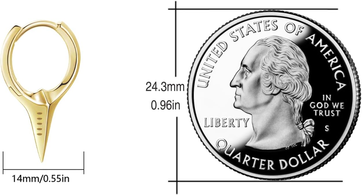 These unique gold earrings are designed in the shape of a sword, symbolizing bravery and strength like a warrior. The cross shape represents hope and blessings, inspiring wearers to move forward with spiritual courage. Crafted from sterling silver, the anime-inspired earrings measure 14mm and weigh 2.4 grams per pair.