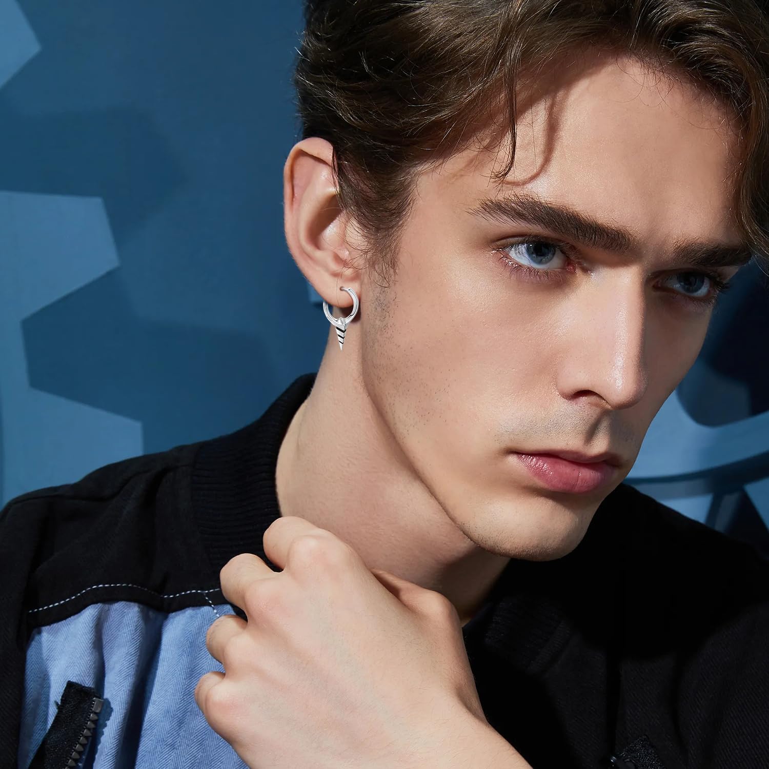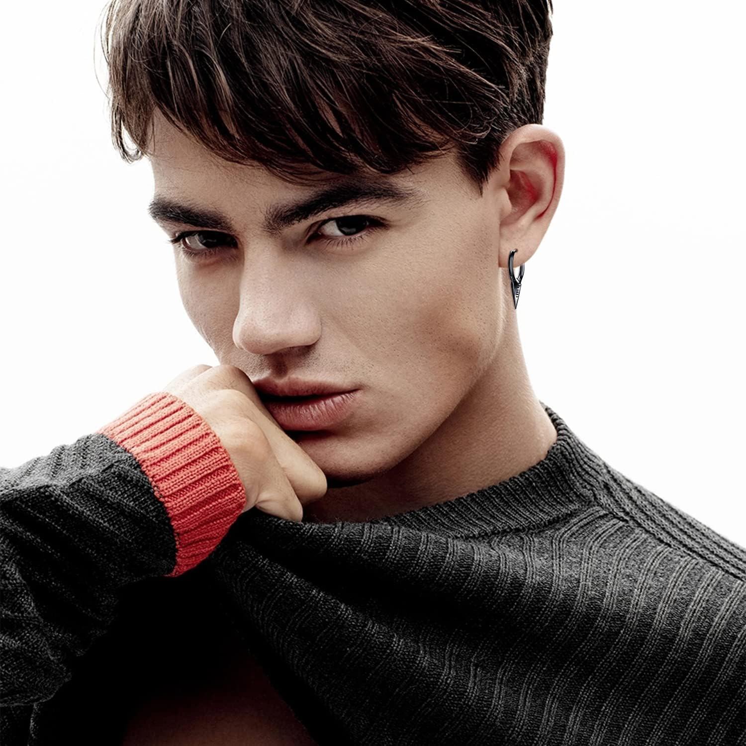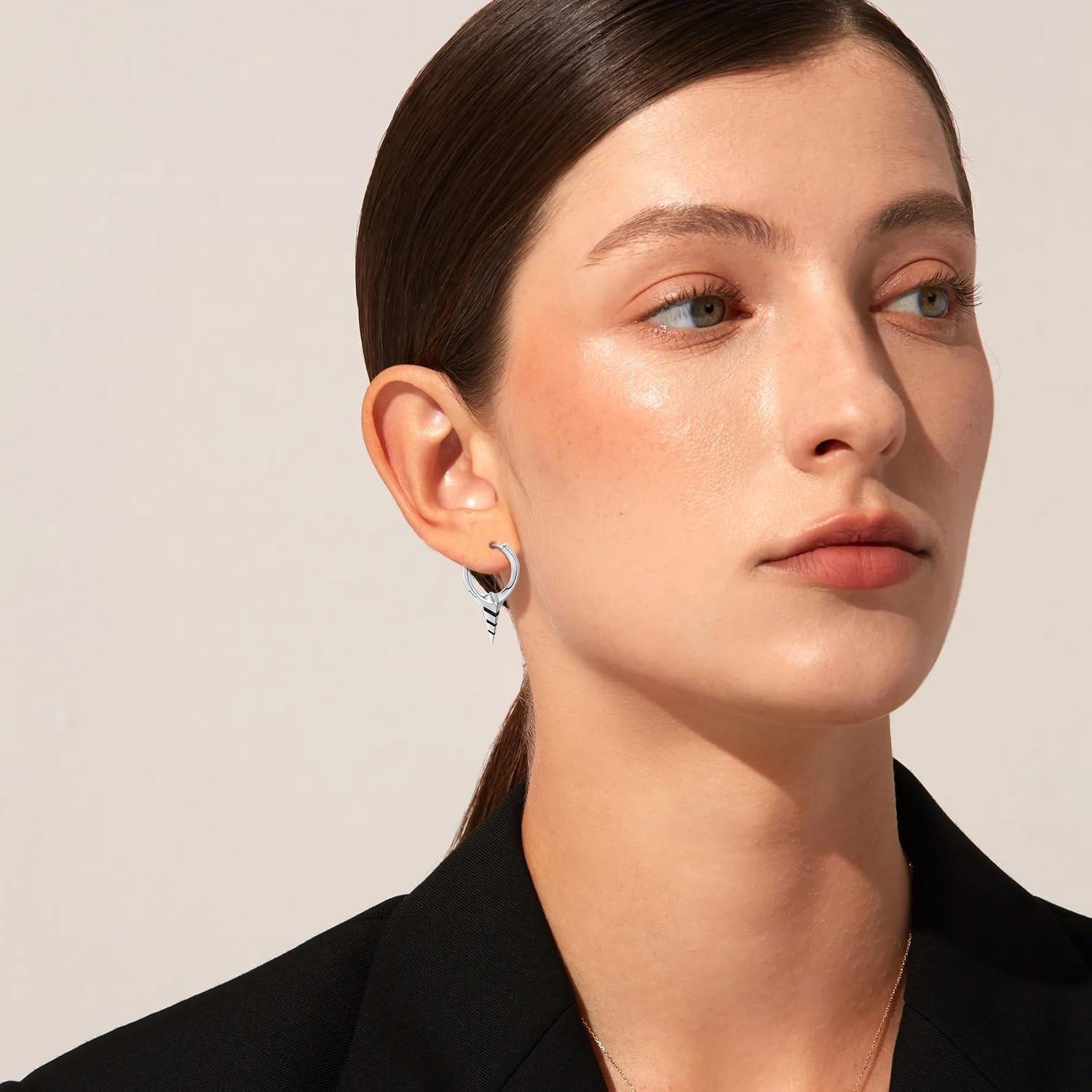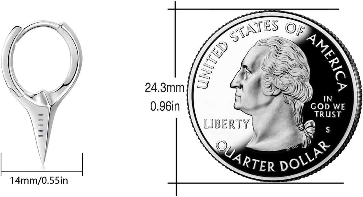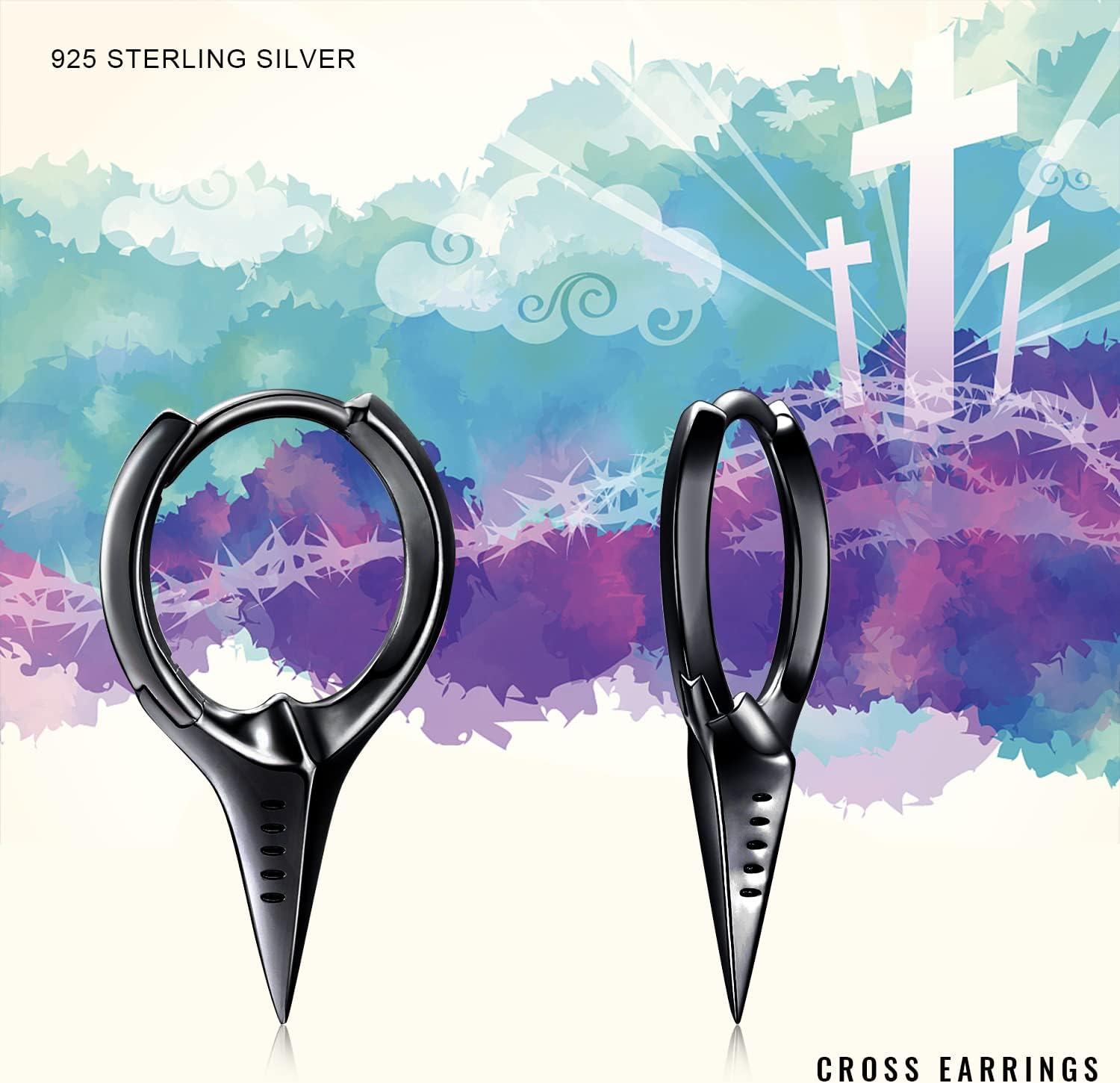 925 Sterling Silver Spiked Sword Cross Huggie Hoop Earrings Punk Style Jewellery
